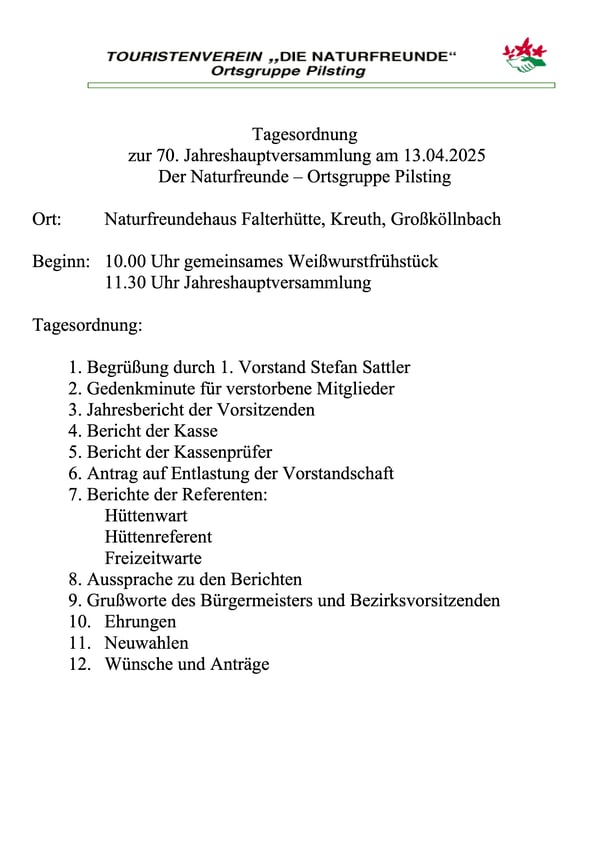 Unsere Jahreshauptversammlung findet am Sonntag, 13. April 2025, in der Falterhütte statt.